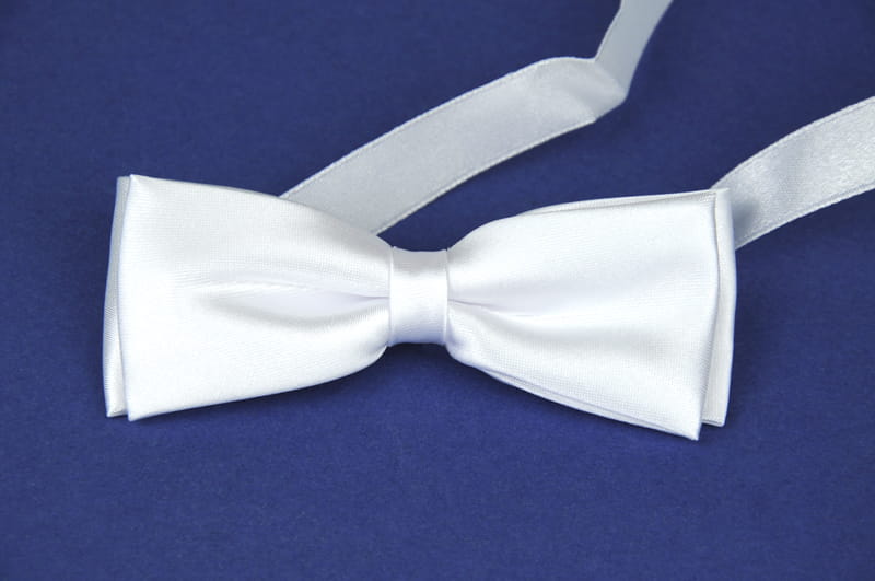 Muszka chłopięca z atłasu, posiada tasiemkę z rzepem do zapięcia wokół szyi.