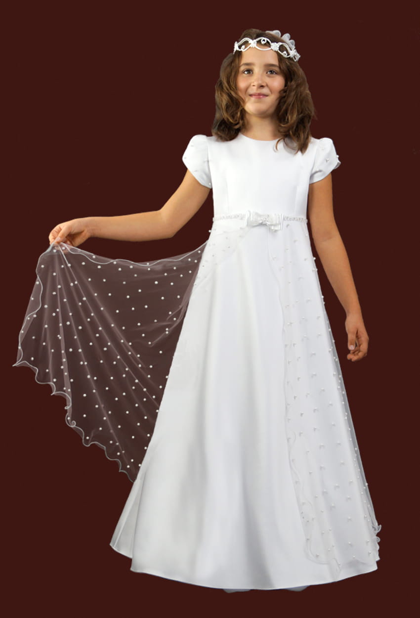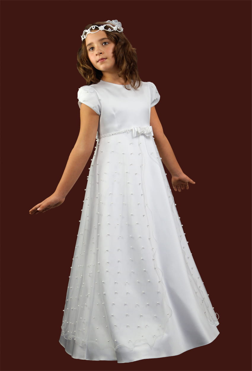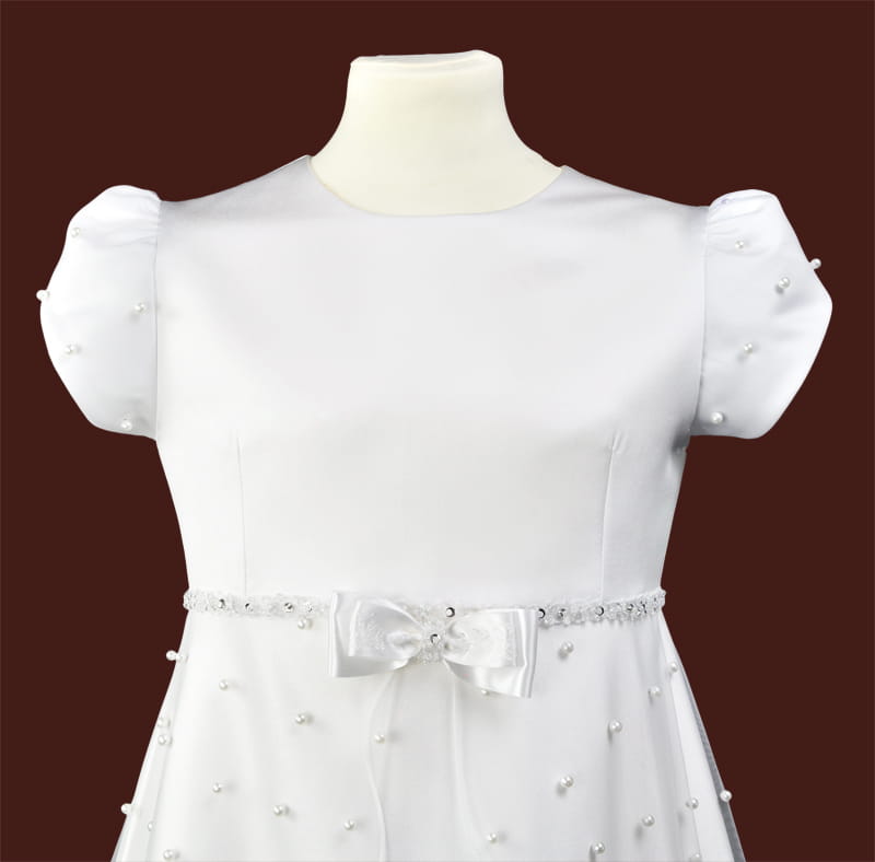 DŁUGA SUKIENKA KOMUNIJNA Z PERŁAMI