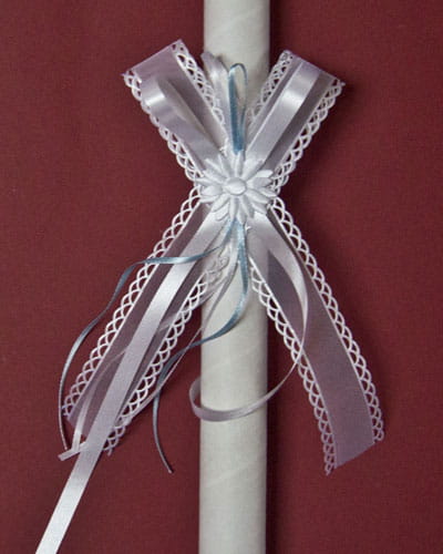 Oryginalny wzór ozdoby na świecę z błękitnym akcentem.