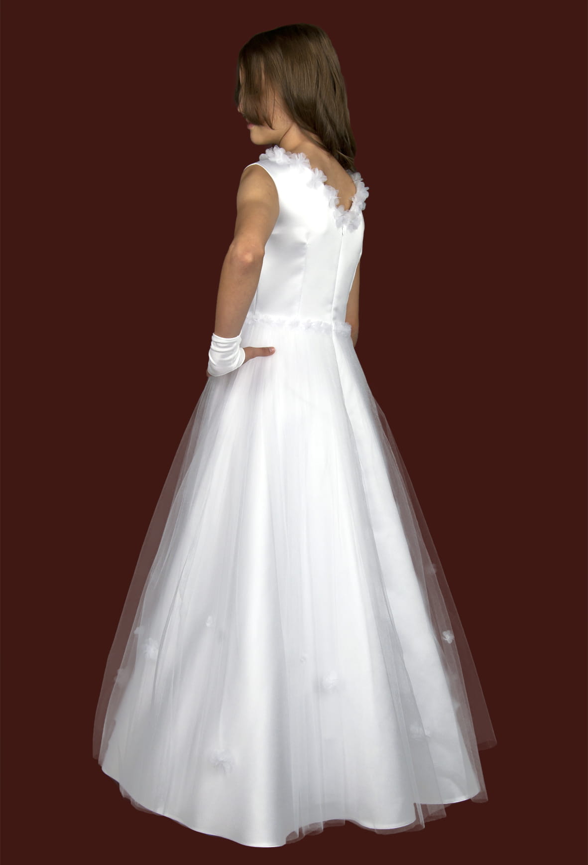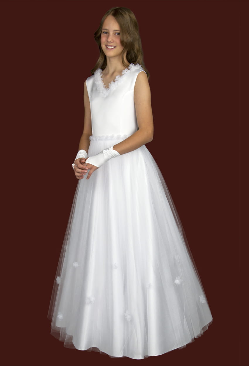 Sukienka komunijna z uroczymi kwiatami, model E296
