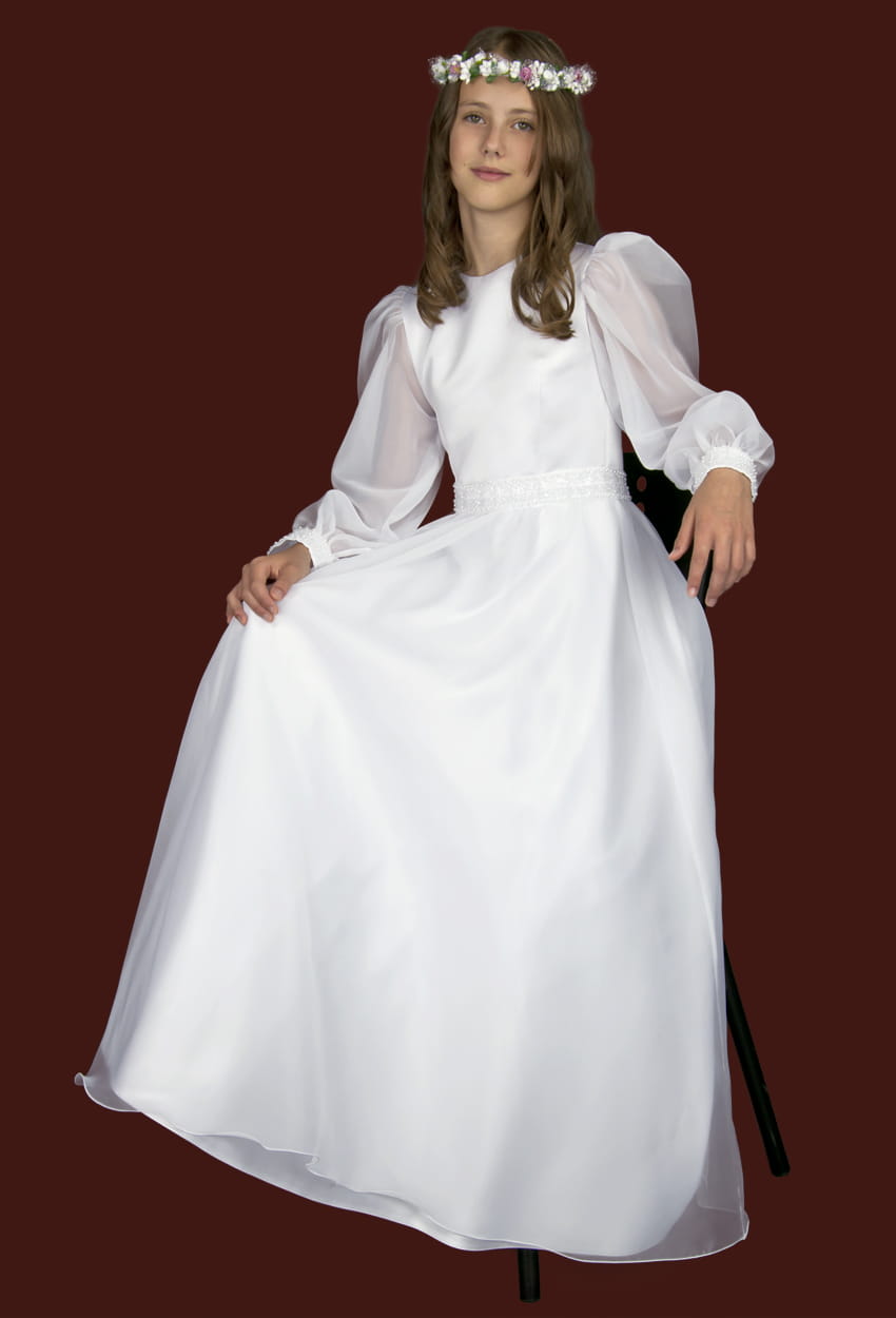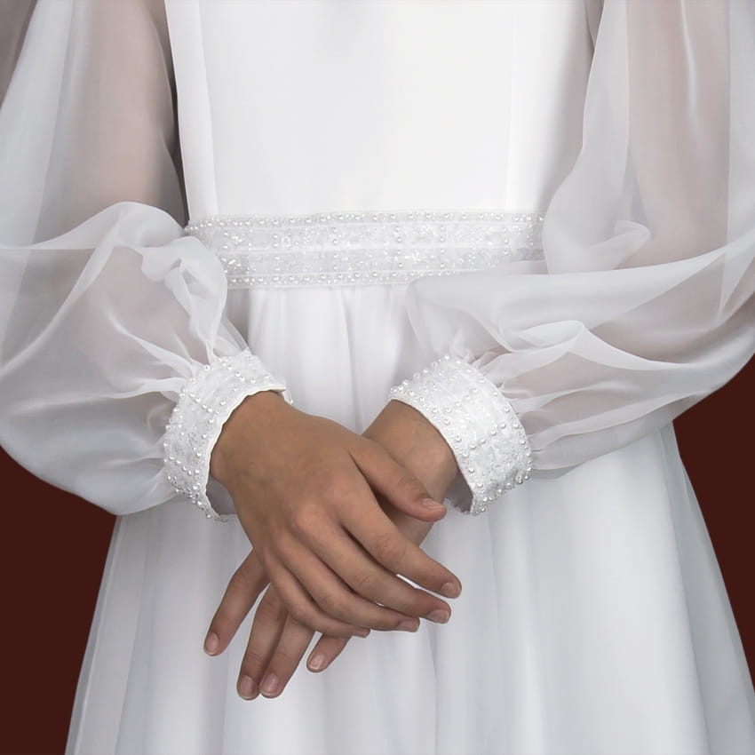 SUKIENKA KOMUNIJNA Z DŁUGIM RĘKAWEM Z WOALU r. 146 S