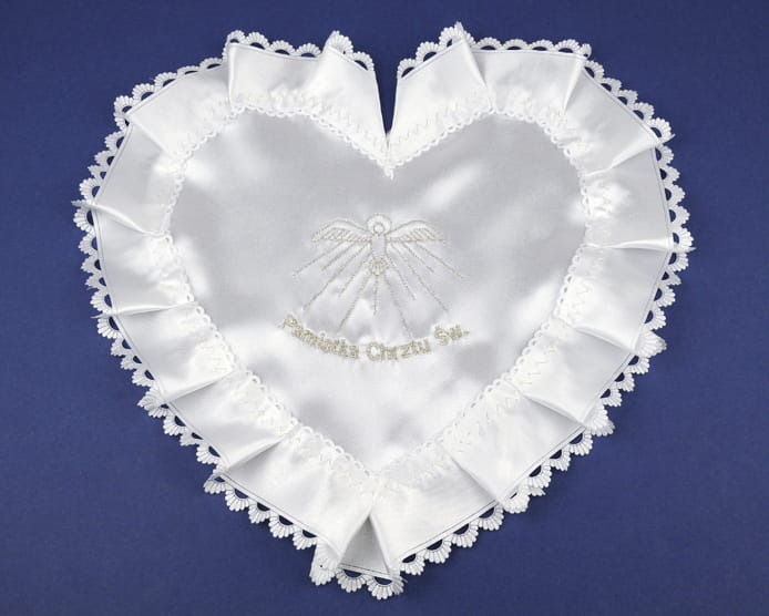 SZATKA DO CHRZTU W KSZTAŁCIE SERCA - SREBRNY HAFT